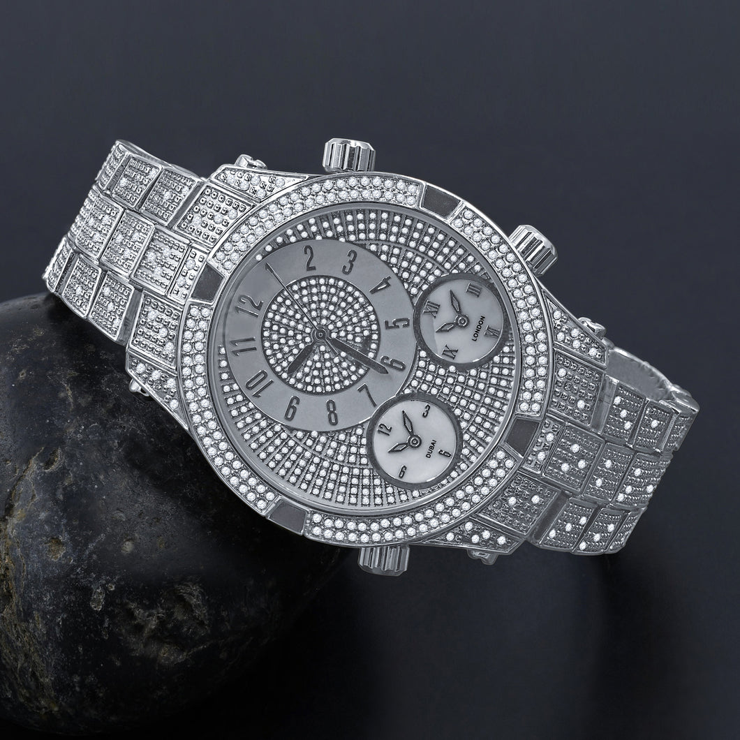 Style is a way to convey yourself without having to speak & this royal fit does it for you. The dial consists of three sub dials with such intricate and smashing appearance. The coruscant & bedazzling CZ stones design and layout that sets you apart from the ordinary.