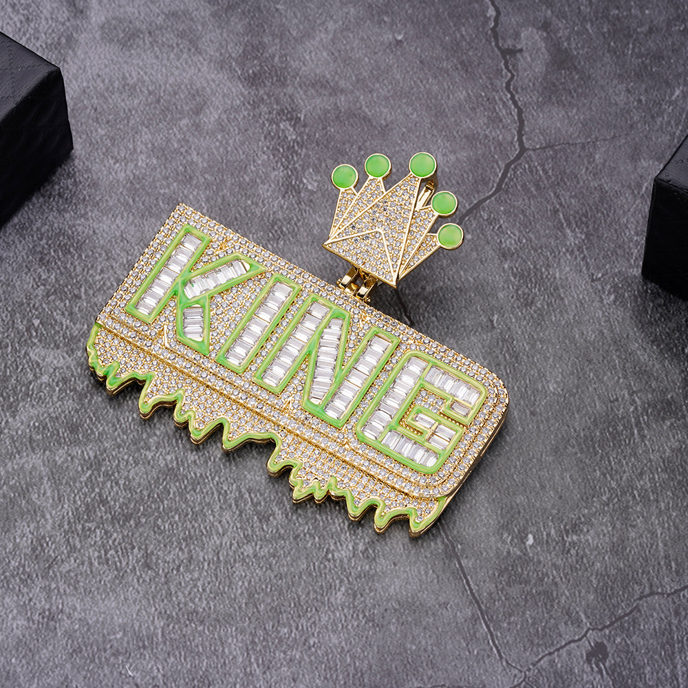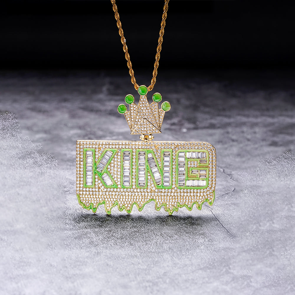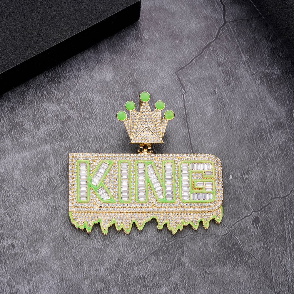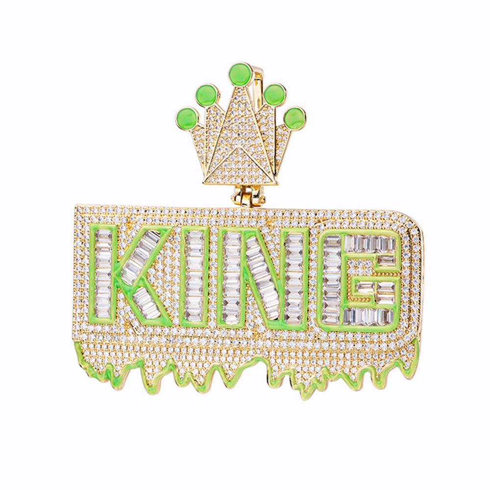 REGIUM; ”He who reigns within himself and rules passions, desires, and fears is more than a king." Depict your luxurious style through this 'glow in the dark' KING pendant. Cached in all glistening CZ stones all over in its design, to reflect volumizing radiance and beam, this brass pendant gives an awe-inspiring look you deserve.