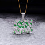 PECUNIA; “A wise person should have money in their head, but not in their heart.” Splurge your dollars over this discrete glow in the dark ‘rich’ locket that is a delineation of affluence and prosperity. Rich word coveted in intricate CZ stones all over with dollar sign on the bottom. Have yourself encircled in the crowd with this conspicuous accessory of mindset.