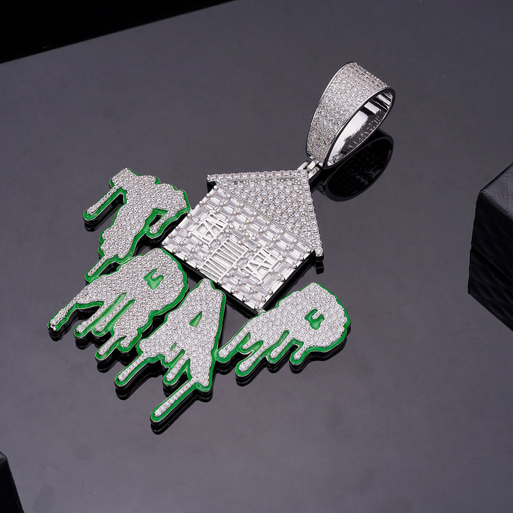 HALTER; Flaunt you style away with this peculiar looking glow in the dark pendant which stands out in the aspect of distinctiveness and elegance. Aiming to help you add an ageless element to your innate style with a piece that is timeless, classic, this artistic piece is smashed all over with CZ stones with a personalized message of ‘Trap’. This pendant is one of its kind that is best suited for someone who has a captivating persona.