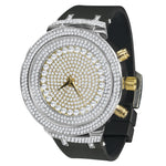 Ice Master branded Bling Iced out Leather band, Watch with CZ on bezel, Japan Movement, Japanese Battery, Steel Backcover, Silicone Band, Solid Alloy construction, Case thickness approx. 11-13mm, Case Diameter approx. 41-45mm, Individual polybag packaged.