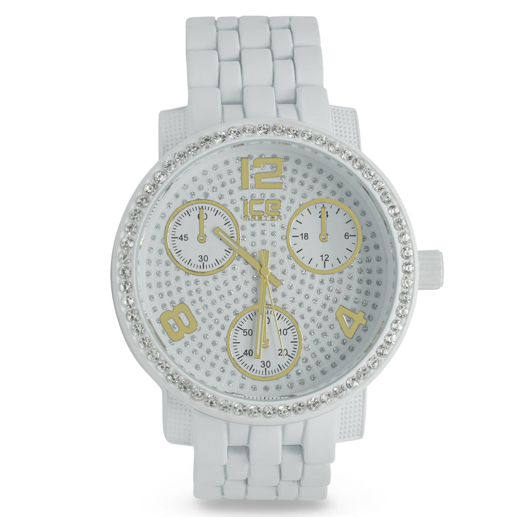 Ice Master branded Bling Metal , Watch with CZ on bezel, Japan Movement, Japanese Battery, Steel Backcover, 100% adjustable links, Solid Alloy construction, Case thickness approx. 11-13mm, Case Diameter approx. 41-45mm, Individual polybag packaged.