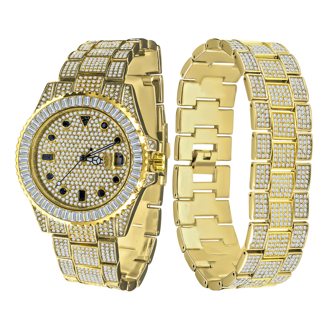 INTERSTELLAR DIVERS BEZEL ICED OUT WATCH & BRACELET SET | 530582