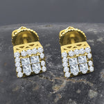 IRRIDIATE shine brighter than the sun with these classic cuboidal stud earrings. Inspired by the vintage style, these golden plated ornament features gleaming CZ stones in cuboidal shape to offer you an even anomalous look. Perfect with any everyday casual to strict business look. These luscious set of earrings are guaranteed to become your next jewelry obsession.