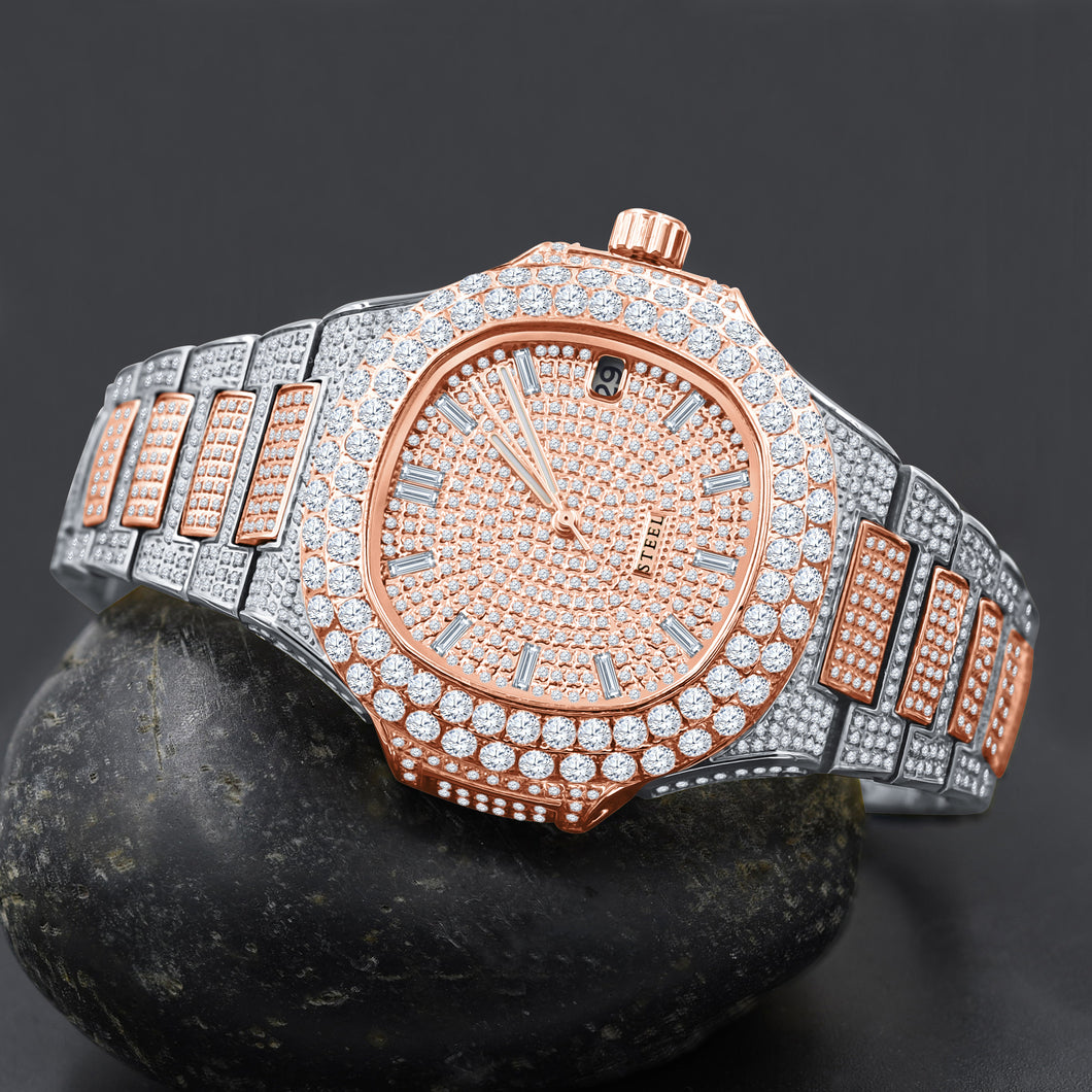 LORD; Let the watch reminds you that Nothing is ours except time .This heavenly designed timepiece is richly adorned with crystal clear stones in its over all setting. The unique dial with date-display window, its bezel and metal band, make this accessory non-resistant to purchase. Shine like a sparkler star in the dark night wearing this.