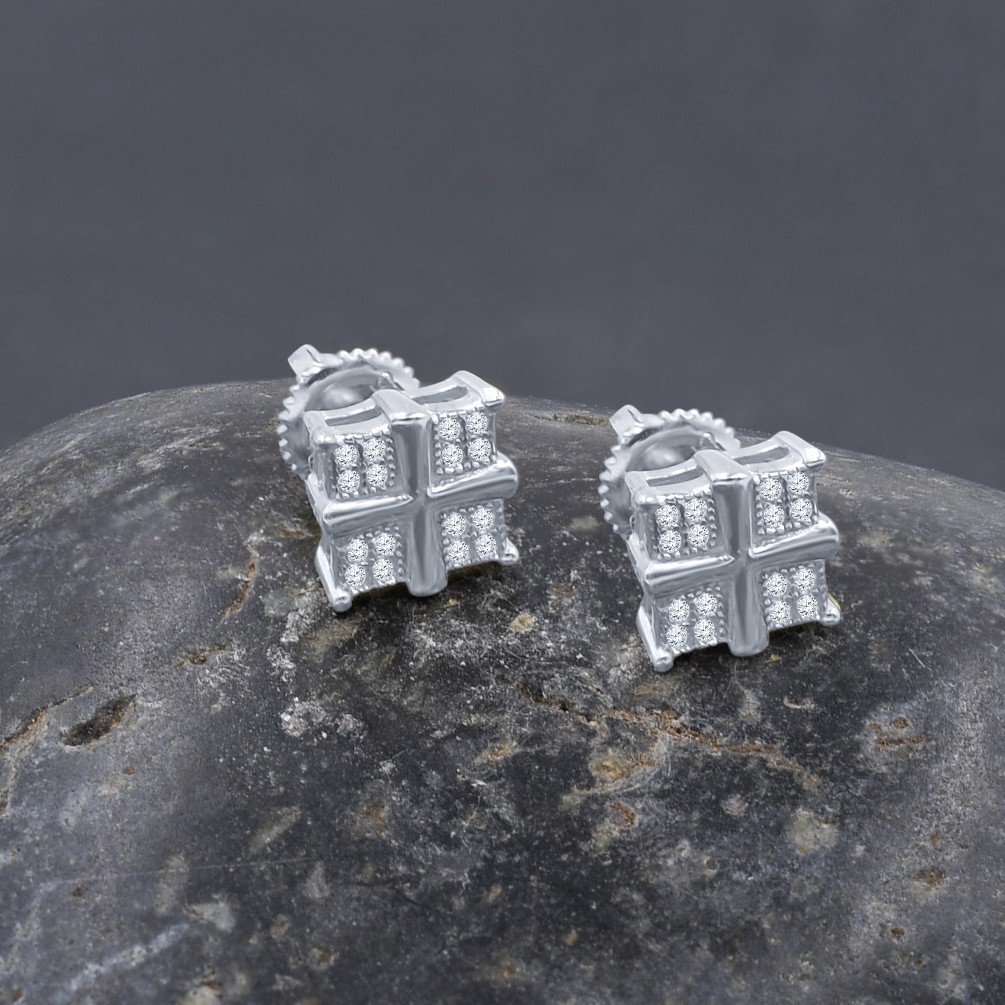 Miniature Add novelty and mystique to your look. Sheeny zircon heightens a discerning touch to these quad earrings. Bejeweled in white cubic zirconia stones, these brass trinkets are gold plated to proffer a glossy glaze.