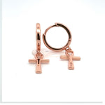 MYSTARA; This 925 CZ Rose Gold Iced Out Earrings are a captivating blend of elegance and style. Featuring dazzling CZ stones set in rhodium-plated sterling silver, they offer a luxurious look at an affordable price. These earrings are versatile, suitable for both casual and formal occasions, adding a touch of glamour to any outfit. Their durability and resistance to tarnishing ensure long-lasting beauty, making them a timeless addition to your jewelry collection.