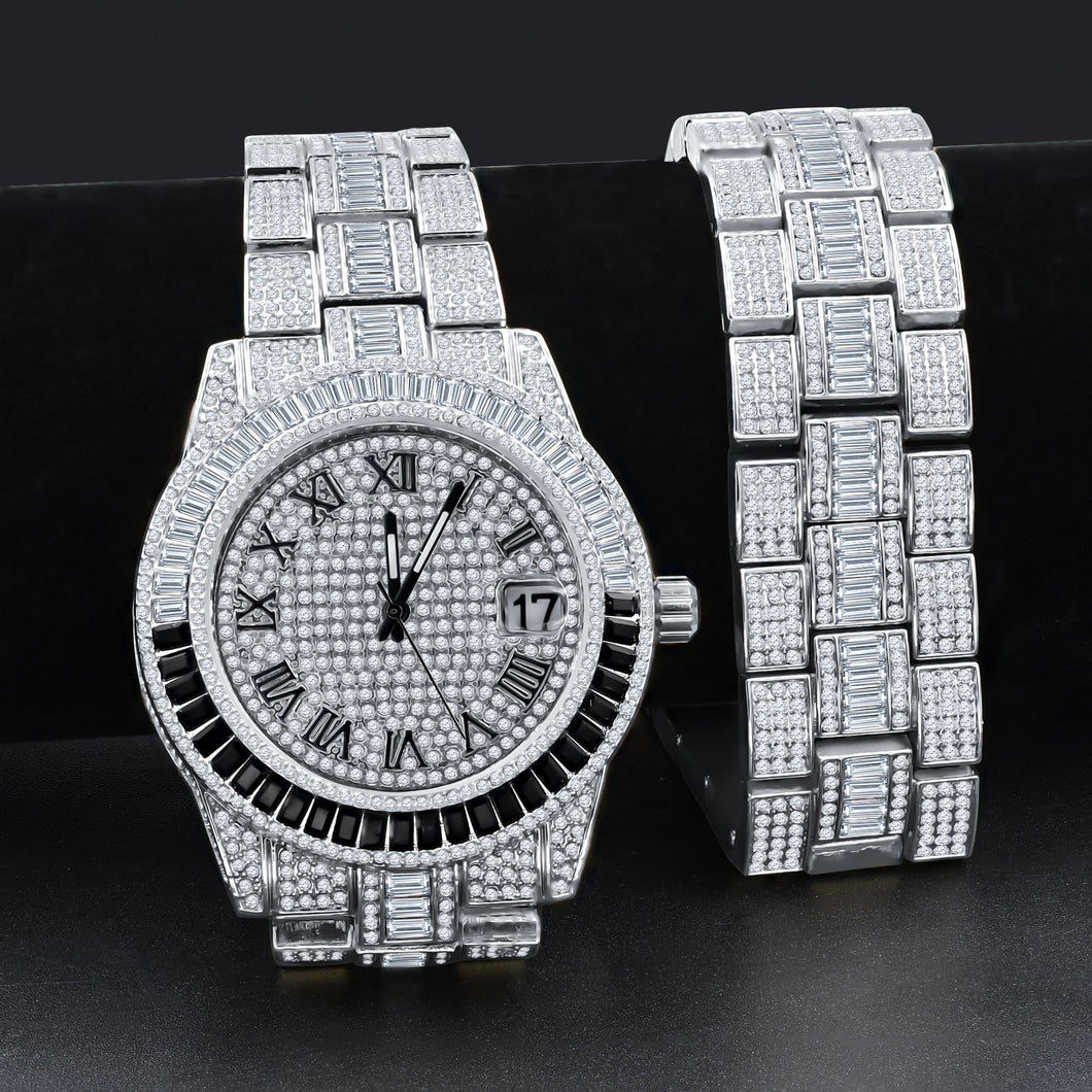 OYSTER BAGUETTE BEZEL ICED OUT WATCH & BRACELET SET | 530757