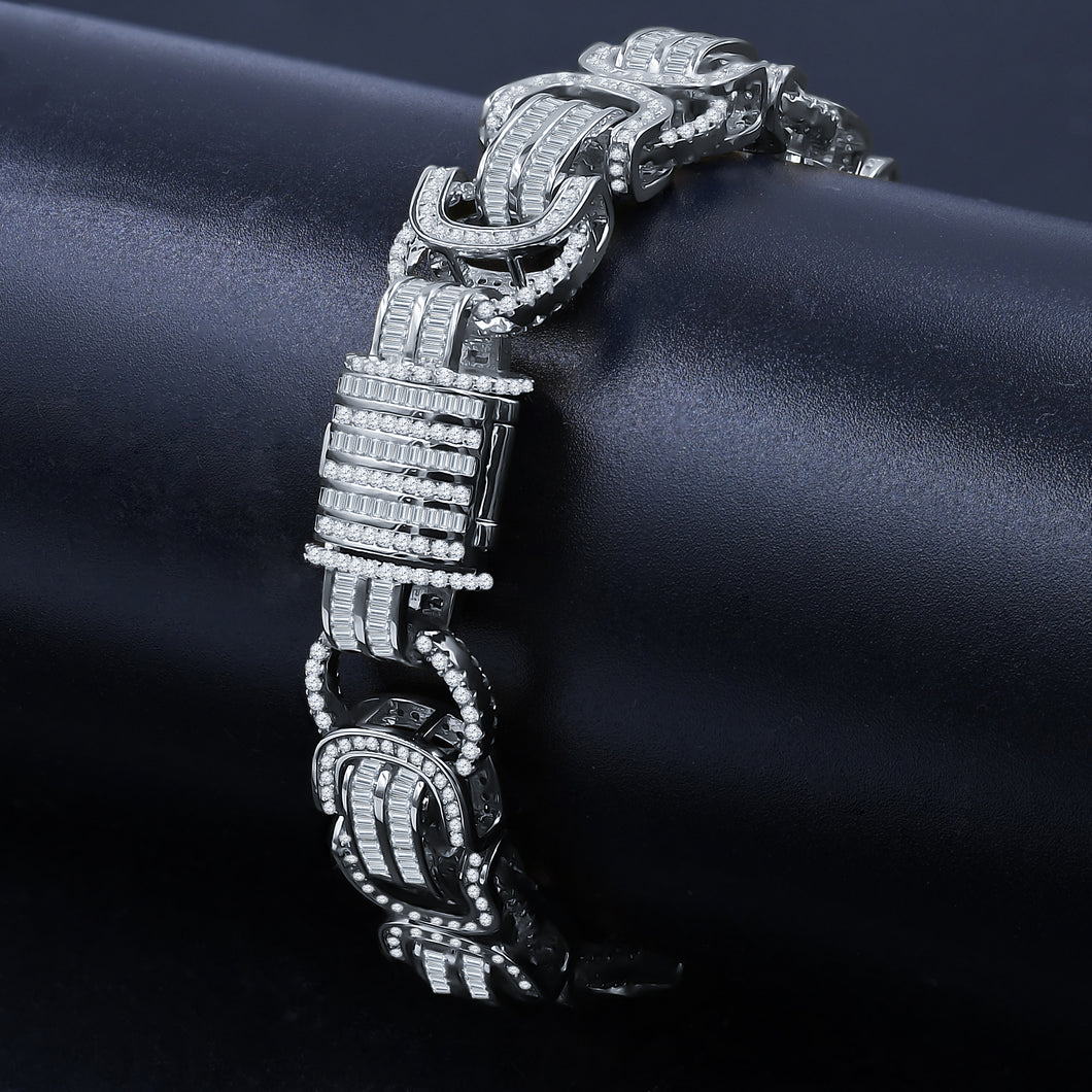 PROSAIC this imperial aureate wristlet with minute silver CZ stones is designed in a pendantic way to uplift your bold look in any of the night-outs. Geometrical links which are twisted like a rope chain makes this weighty bracelet even more majestic. Fancy and sleek, this showy bracelet is a popular style adored by ladies. So don't be late and order now!
