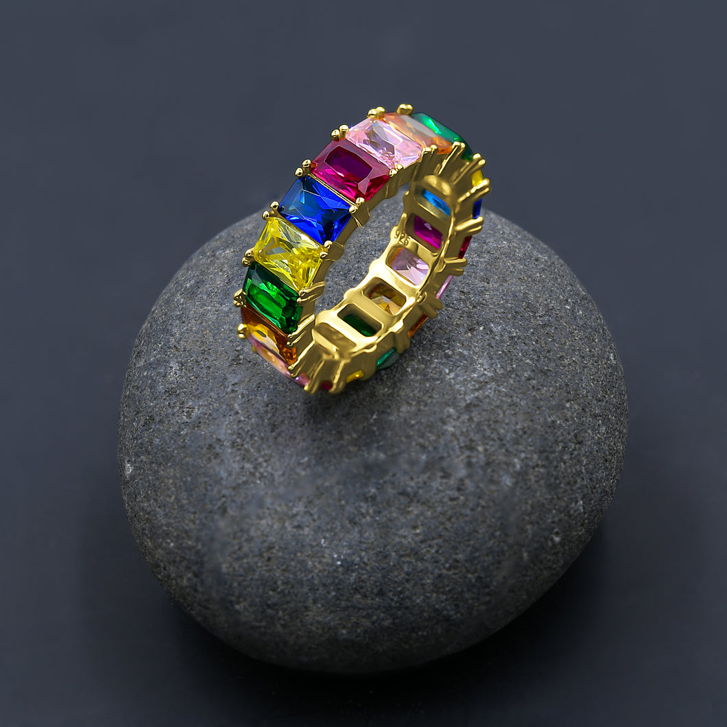 RAINBOW Silver Material 925 Ring with micro-pave CZ prong set, high quality CZ. Available in different sizes. All rings are sizable by a jeweler