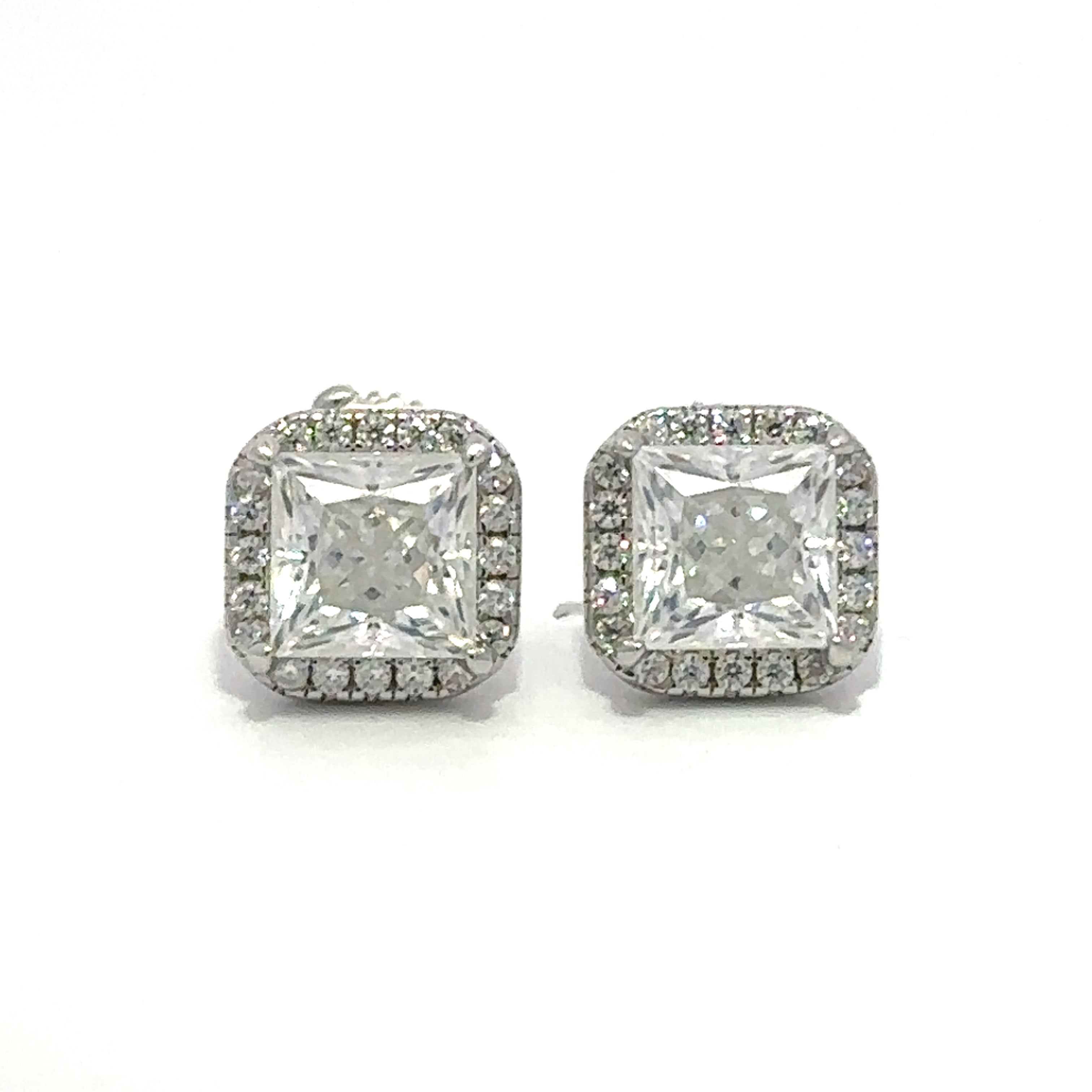 REGALA; This Rhodium Moissanite Iced Out Hallow Princess Cut Earring is a statement of elegance and luxury. Its uses extend from adding a touch of glamour to everyday wear to complementing formal attire for special occasions. The advantages lie in its durable silver-plated 925 sterling silver construction, ensuring long-lasting shine and brilliance. Adorned with sparkling CZ stones, these earrings offer the allure of diamonds at a more affordable price, making them a coveted accessory for any wardrobe.