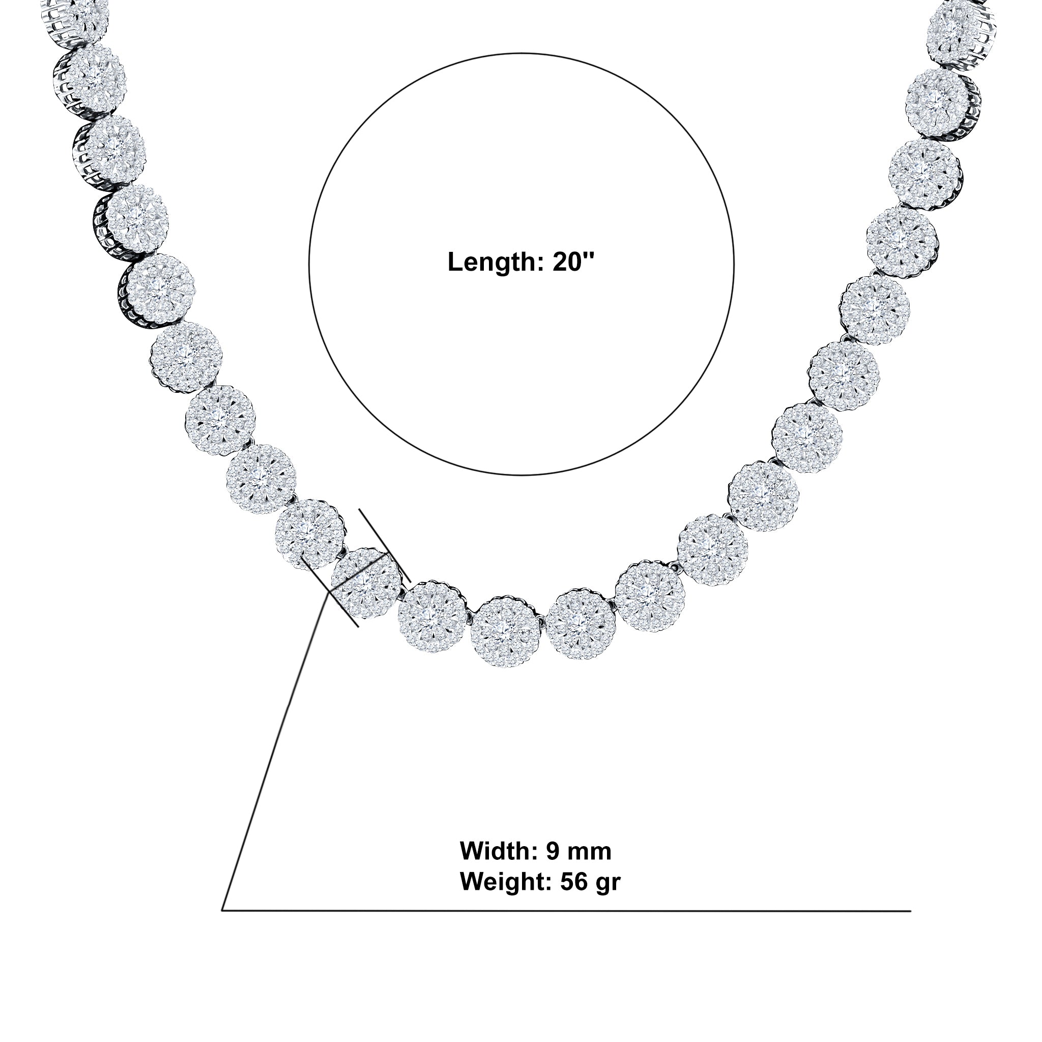 RELISH SILVER MOISSANITE 9MM 20" CHAIN I 992441