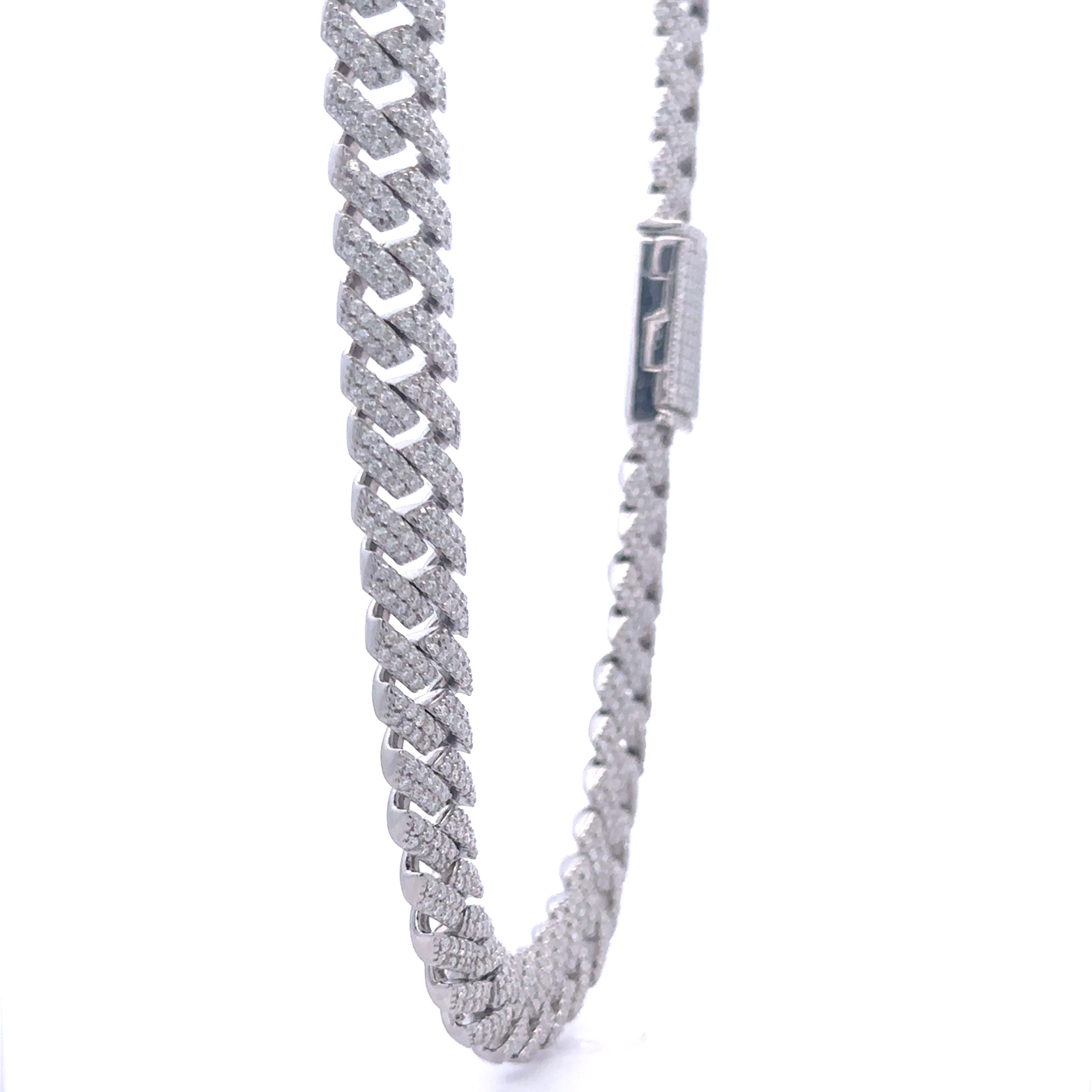 RENAZA; This premium quality silver cuban chain is trendy and long lasting. Adorned with white moissanite stones beautifully, this piece is sure to make a statement. Get your hands on it before it runs out of your access.