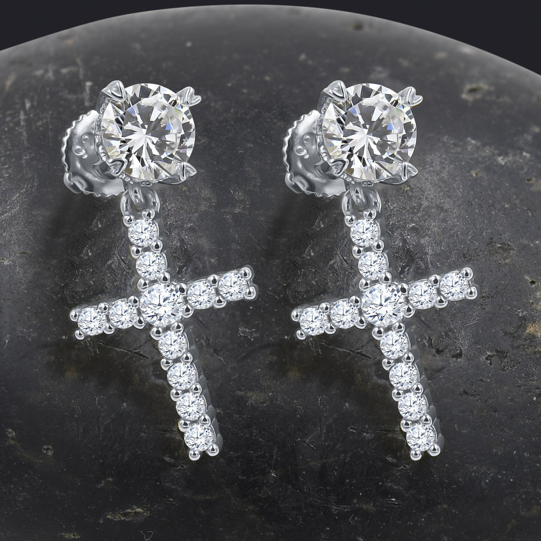 SCHISMATIC; Everyone who sees these silver drop is sure to be impressed by their sophisticated and devout appeal. Made of silver and prettified with CZ stones, this pair of earrings exude a captivating radiance. These earrings are a stunning addition to any ensemble.