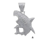 Sterling Silver 925 material, micropave prong set CZ stones, bell large enough for a 3mm/4mm chain. Pendant height is approx. 1.75 inches
