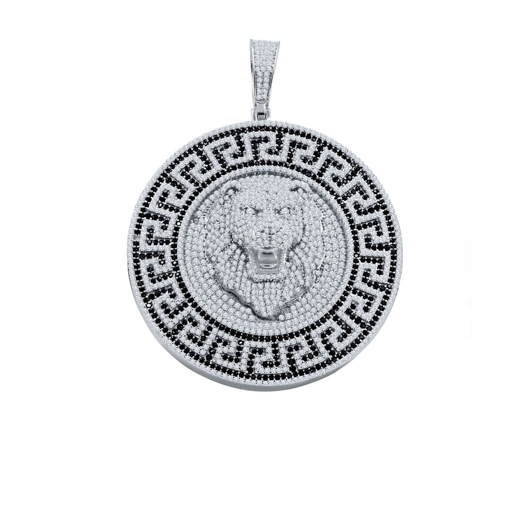 SUBLIMINAL; This CZ Rhodium Pendant Iced Out Pendant is a stylish accessory ideal for enhancing any outfit. Its rhodium plating ensures durability and resistance to tarnish, while the cubic zirconia stones offer brilliant sparkle and affordability. This pendant's elegance makes it perfect for special occasions or daily wear, providing a touch of luxury and sophistication without compromising on cost or quality.