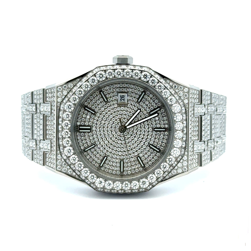 SYRENTH STEEL SILVER MOISSANITE WATCH ICED OUT I 590091