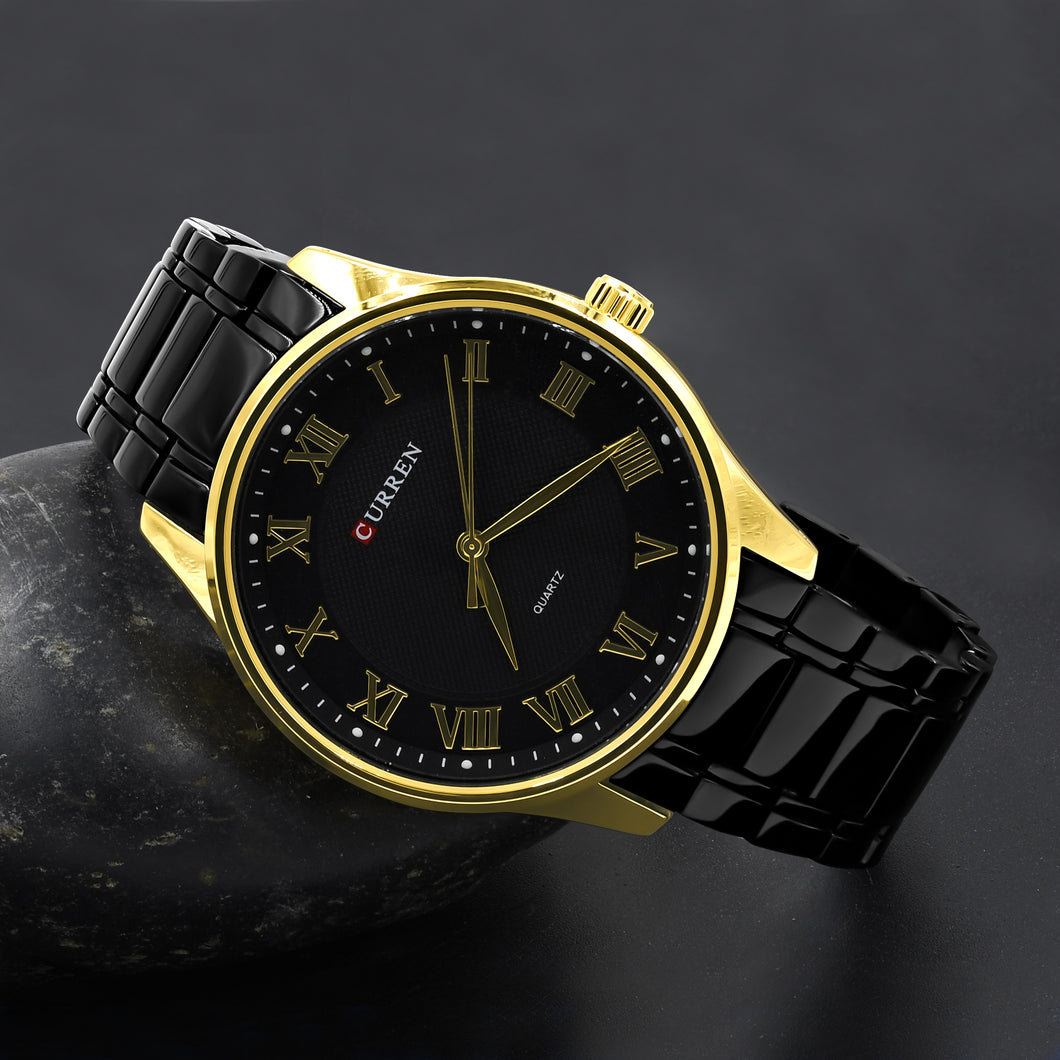 TRAHO; This lavishly designed masterpiece embodies urbanity and finesse whenever its on your wrist. Its luminous watch band, consists of a discernible dial which has prominent hour markers. Never fail to make a statement with this precisely designed exquisite metal accessory. Whether it's for a day out with friends or a night on the red carpet, this watch is your go-to wrist companion. It's a serious timepiece with an appreciation for the finer things.