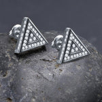 TRIGONAL are you in pursuit of an ideal present for her? Lay hold of these alluring stud earrings that go with her zestful personality. This trigonic duad of screw back ear tops is a classic blend of sophistication and mystique. Embellished with equisite silver CZ stones in a trilateral manner, these ear jewels would make her feel over the moon.