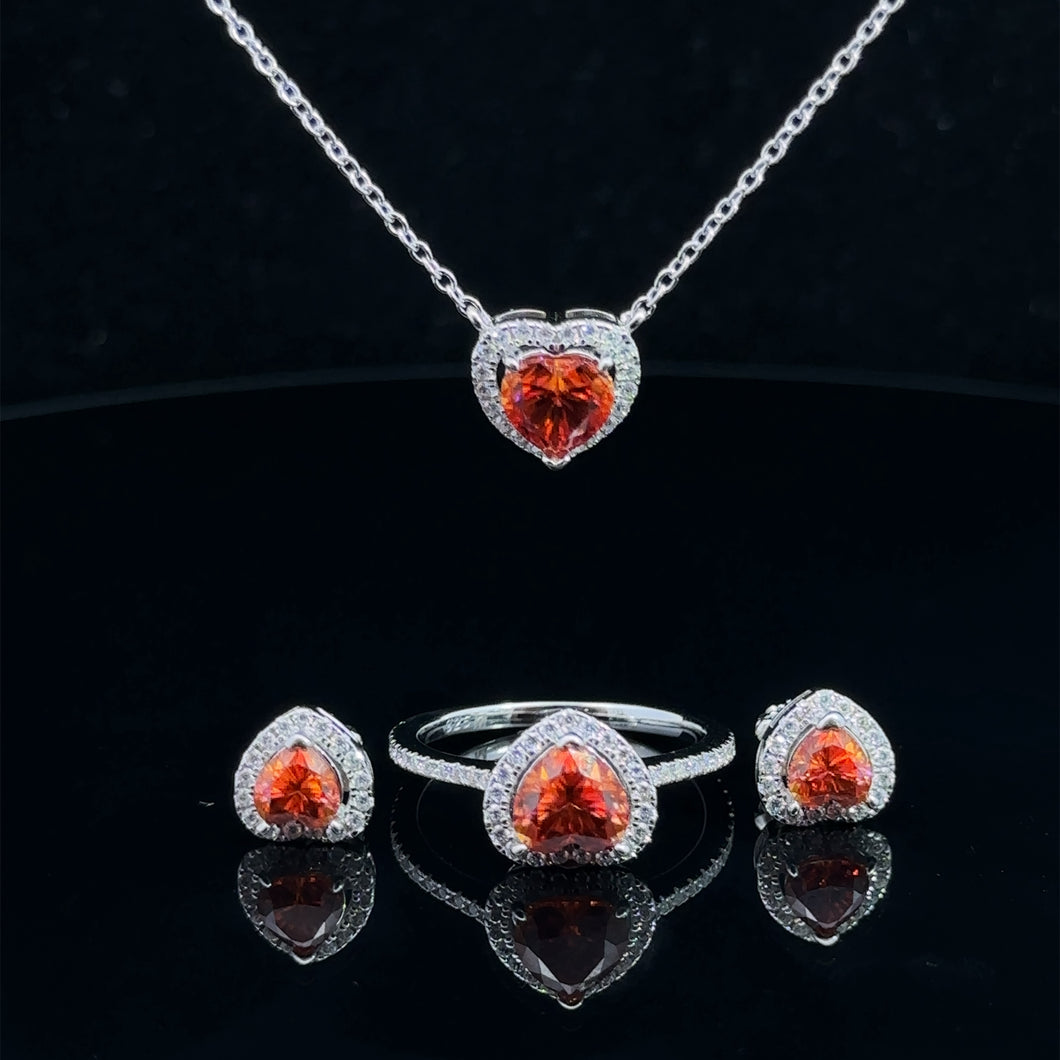 VERMILION; This 925 Red Heart-Shaped Moissanite Bundle offers a striking combination of elegance and sophistication. Perfect for adding a touch of glamour to any outfit, this pendant is versatile and can be worn for various occasions, from casual gatherings to formal events. Its vibrant red hue exudes confidence and charm, while the Moissanite stones provide brilliance and sparkle. With its Rhodium plating, it ensures durability and long-lasting shine, making it a timeless investment piece.