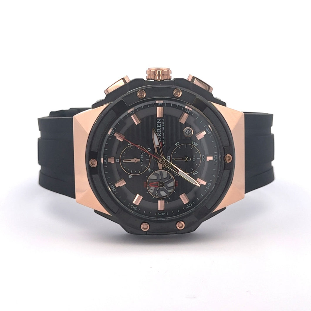 VERVA CURREN BLACK LEATHER ICED OUT WATCH I 541663