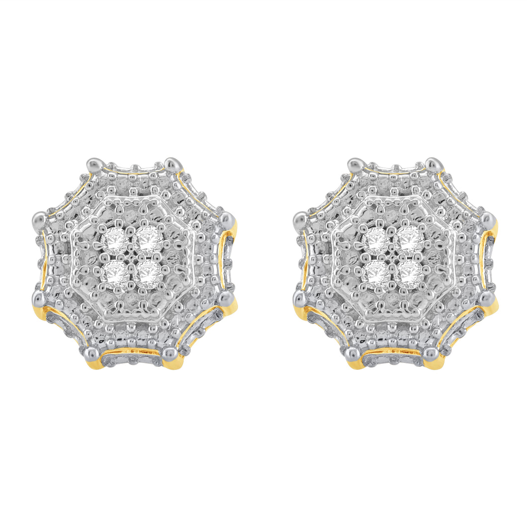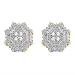 SCHICK; These earrings are as unique as their name describes and are sure to instantly become your ultimate favorite. Whether it is for any fancy or casual wear, they are designed to cater to every style need. The pentagon arrange of intricate shimmering diamonds with golden base, reflects a nonpareil look to this set of accessory.